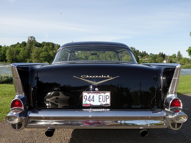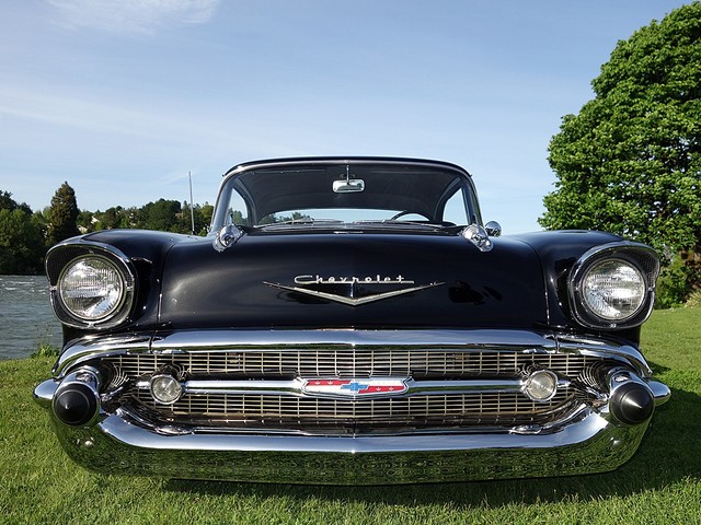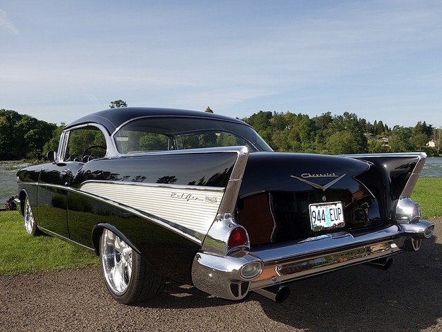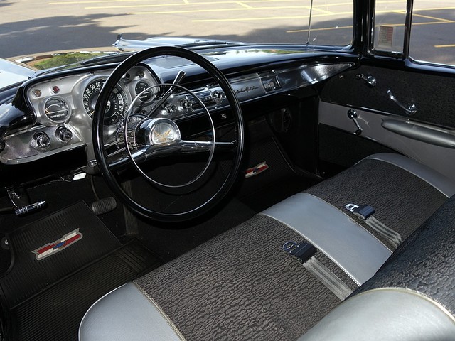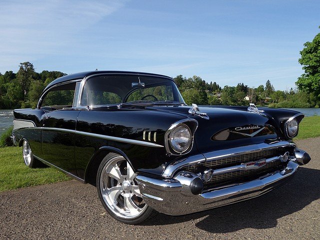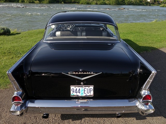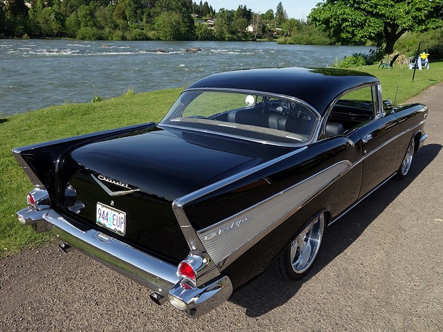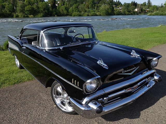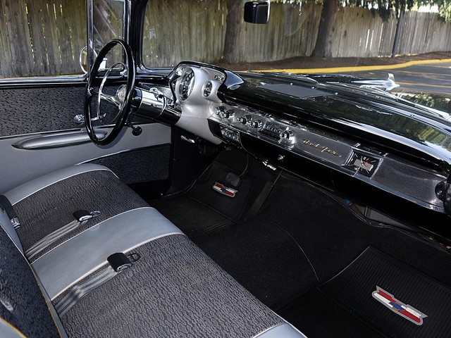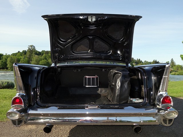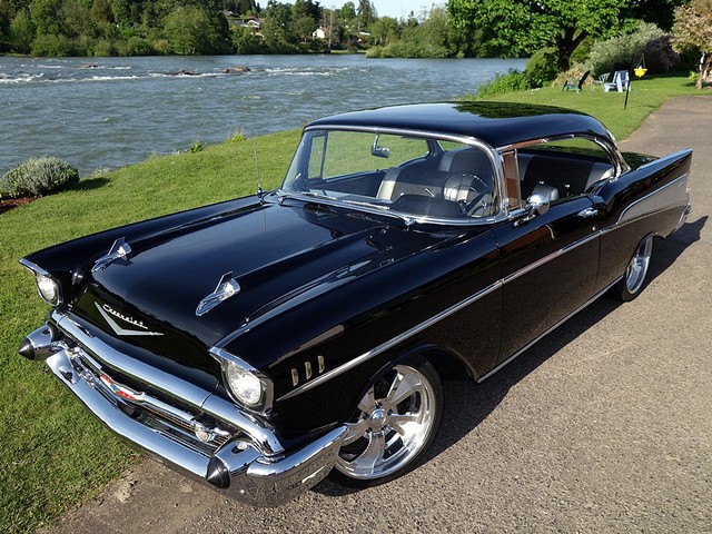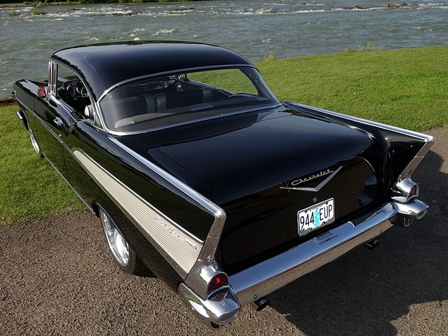 Just in from a private collection! Stunning 57 Chevy Hardtop. Finished in Onyx Black with Silver and Black factory style interior with tilt steering column. The body is rust free, and arrow straight with excellent alignment! Beautiful chrome, stainless, and glass.