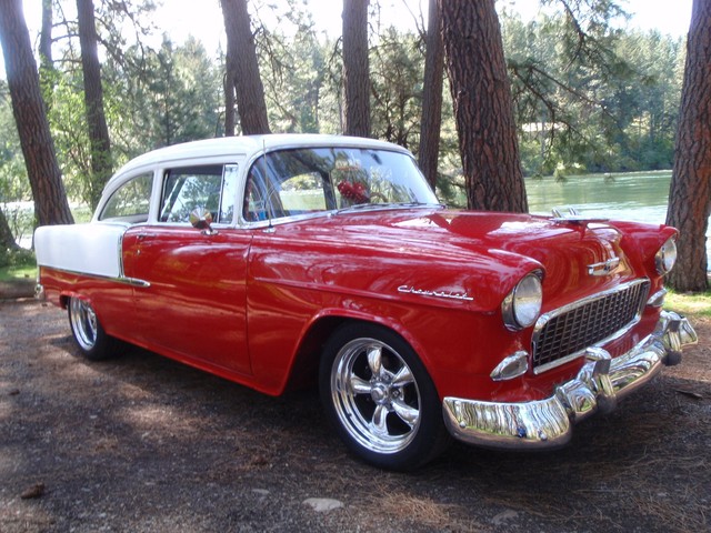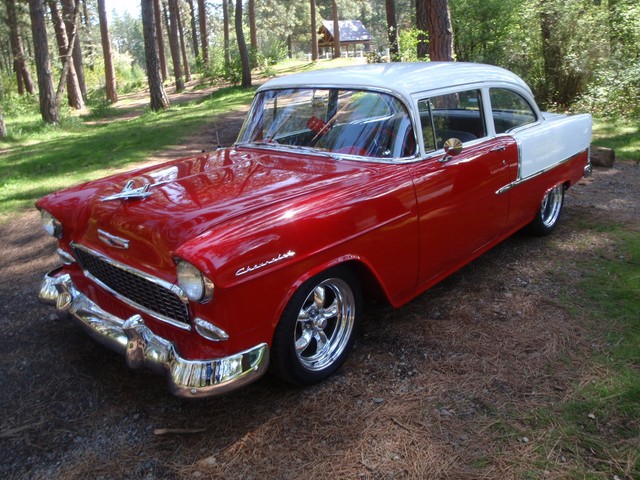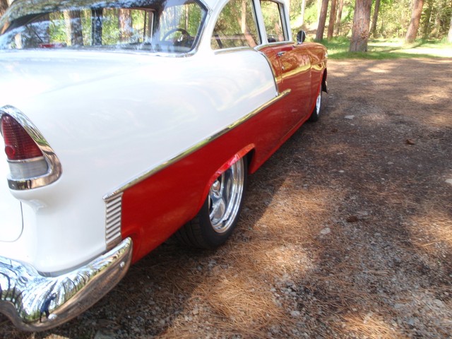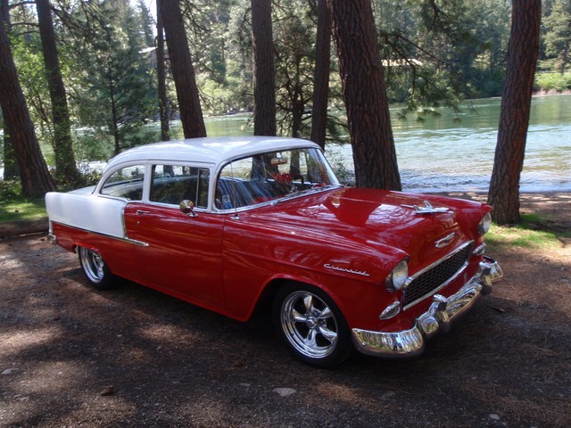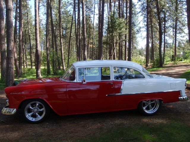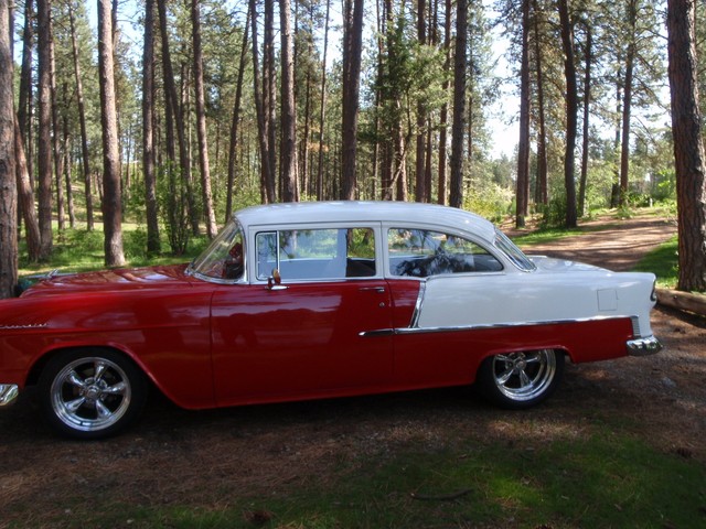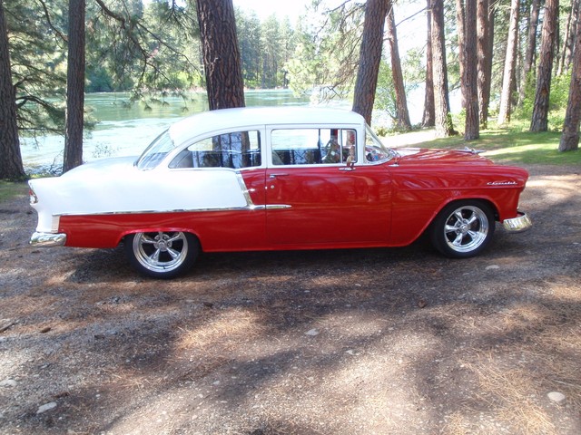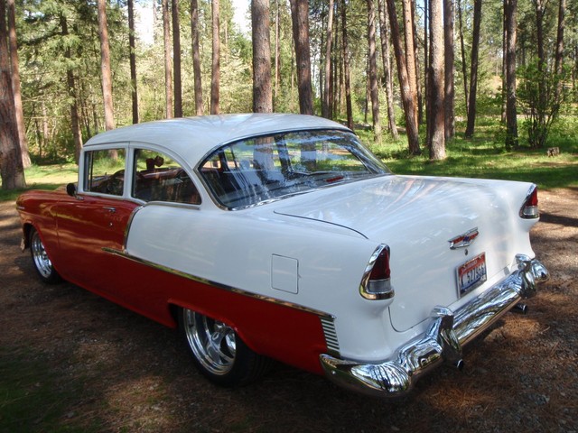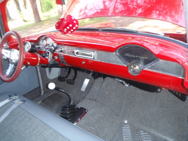 This Is A Gorgeous 1955 Chevrolet 210 Sedan 2 Door Post Custom Street Rod.   Just Over 1,000 Miles On Fresh New Crate 350 Chevy Motor.  Everything Is New And She Runs Perfect.  Rust Free Car With Perfect Body Lines.  Does Not Have A Trailer Queen Paint But Looks Great.  Has A Little Lead Filler Around The Passenger Side Headlight Bucket And A Pea Size Ding In The Front Of The Hood. Again,  Paint Is Not Perfect.  You Will Notice On The Undercarriage Is Missing The Bell Housing Fly Wheel Cover.  Just Installed New One.  This Car Is A Great Driver. Below Is A List Of What This Beautiful Classic Has To Offer.