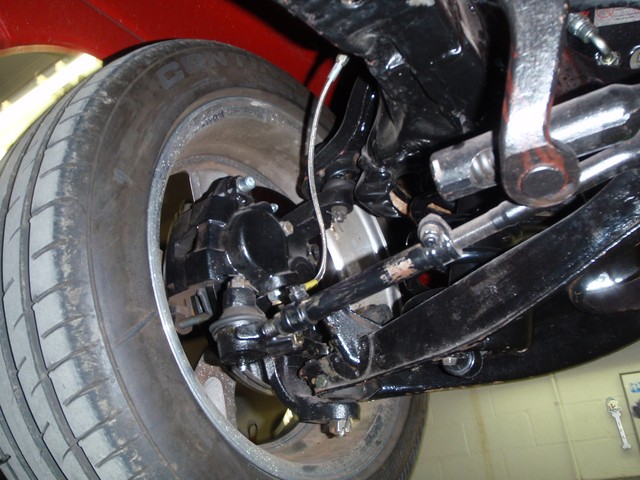 Heidts 2” dropped spindles with disc brakes and rotors.