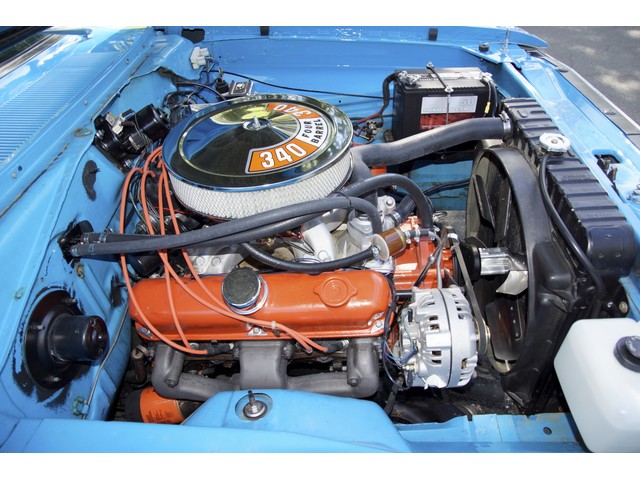 The engine is beautifully detailed.  It runs beautifully. Starts & stops as it should.  This Dart Demon Fastback Coupe came factory equipped with the optional 340ci high performance engine which put out a very respectable 275hp for the time.  Most other car companies had already begun to cut back on performance and horsepower due to new regulations and higher gas prices. Dodge held out for another year and kept the Demon strong.  Weighing in at a mere 3100lbs, this car could move, especially off the line. This sporty 340ci Demon came decked out with bodyside tape stripes, matte-black hood with dual non-functioning hood scoops and wide tires on special Rally wheels as part of a specially beefed-up chassis.