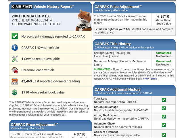 2001 HONDA CR-V LX 4WD ONE OWNER 80+PHOTOS SEE DESCRIPTION WOW MUST SEE!!