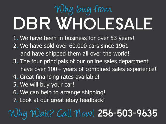 DBR Wholesale is part of Damson Automotive group.  Check us out on the internet.  Jerry Damson has been in automobile  business over 52 years. I personally have over 40 years of automobile experience in both  the wholesale and retail  automotive marketplace.  Buyers fan out into the marketplace to locate and purchase the most in demand and rare pre-owned automobiles.  You will see unusual listings of rare used cars and will be treated fairly and promptly.  Let us get you in the vehicle of your dreams!  Thanks Rick Hall / Jerry Damson Honda