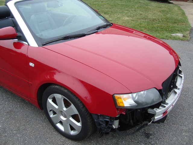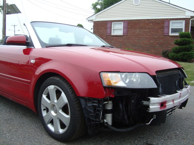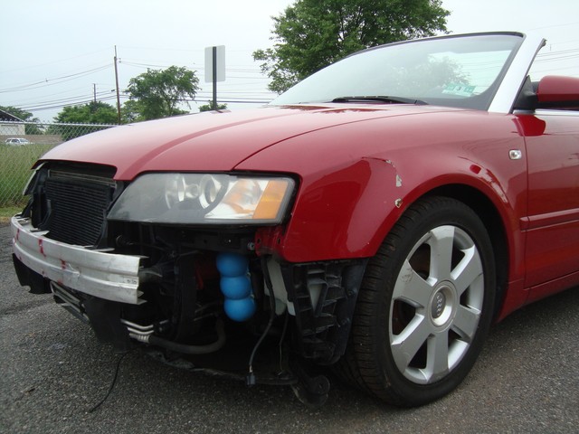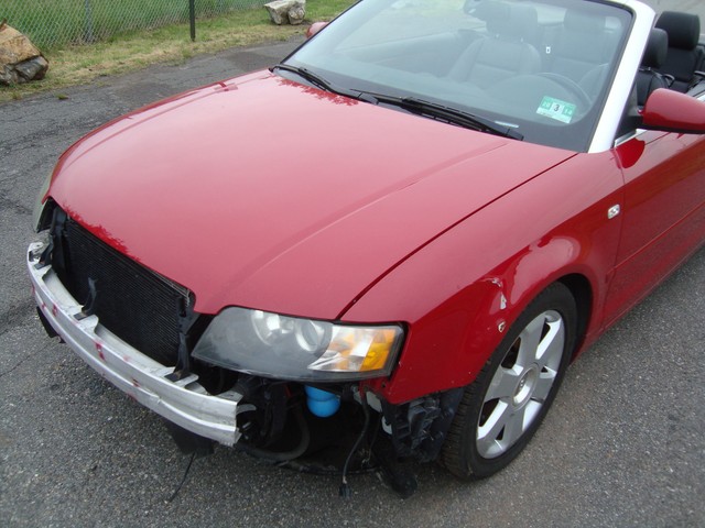 As seen in the pictures down below this nice looking 2006 Audi A4 V6 Quattro AWD Power Convertible has sustained very light front end damage. This vehicle was directly purchased from insurance auctions for resale in the condition you see it on the pics. No middle man involved. We have the salvage certificate of title (no-liens) at hand and ready to transfer to the new owner. Such vehicles can be legally returned back to the roads after repairs and your state motor vehicles inspection. Damaged areas are clearly shown in the pictures below. Looks like it was a light tap to the front end. Headlights are fully in tact with only left headlight having broken but fixable top mounting tabs. Left fender has a dent, rest of the exterior in great condition with excellent paint. Front cooling components are all in tact but we did notice a small crack on the radiator which needs to be changed. All airbags are ok. All glass ok. No suspension damage. The great news is that the car starts, engine runs great, goes into gear and we are able to drive it around within our lot. Interior is in excellent condition as seen in the pictures down below. Comes equipped with sport leather seats, sport steering, sport alloys, heated seats, dual power seats, Bose sound/stereo, exquisite wood trim interior, and more. Power convertible top is in good condition and opens/closes fine with the push of a button. Overall great condition indicates that it was a well maintained vehicle. It should be an easy fixer with very minimal parts and light body work. See below photos down below for overall condition and please ask questions before making a purchase and not after.