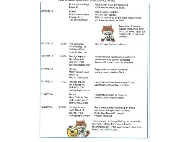 2012 TT QUATTRO AWD PRESTIGE NAVI CARFAX CERTIFIED ONE FLORIDA OWNER WARRANTY