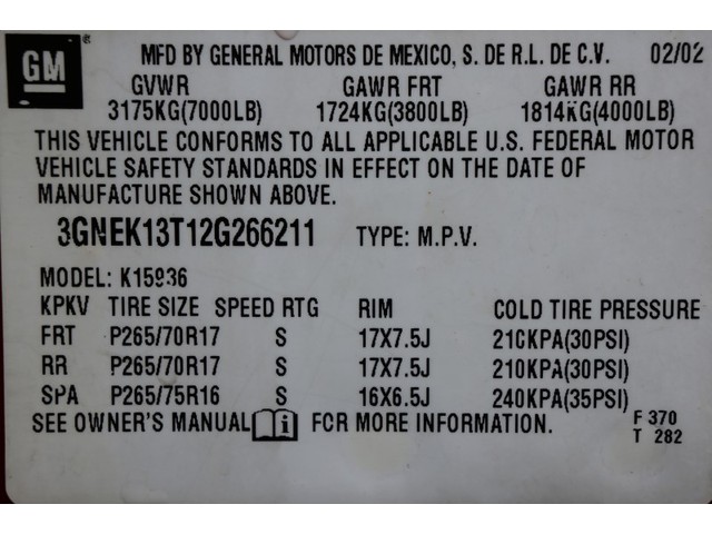• VIN: 3GNEK13T12G266211