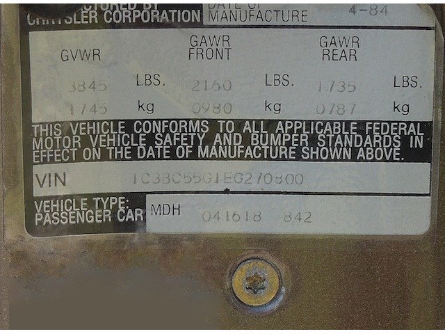 1984 Chrysler Lebaron 1C3BC55G1EG270800