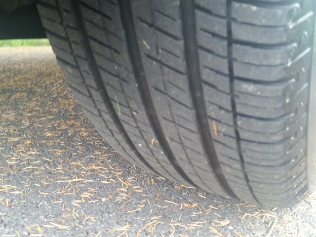 Normal wear on exterior of the vehicle and paint. Vehicle still shines like new but has some damage on the driver/ back driver side door which I have taken a picture of. Minor damage on the passenger side rear view mirror housing which I have taken a picture of. Tires are in great condition, alloy wheels.