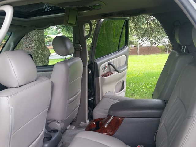 The interior of this suv is very very very clean, all leather seats, wood grain consoles, back seat television, dvd rom, 3rd row seating, power windows, power locks, power side view mirrors, right height adjuster (auto/manual), navigation, sunroof, heated seats, extra cup holders and cigarette light, and cigarette tray, rea a/c controls, locking rear axel, 4wd high and low, cruise control, auto dimming rear view mirror, 3 pick garage opener, temperater meter, compass, three prong house outlet, aux video input, rear headphone input. No unusual smells from the interior of this vehicle eerythign very clean and presentable for a vehicle of this age and miles.