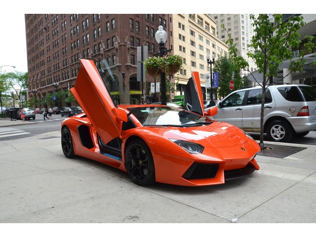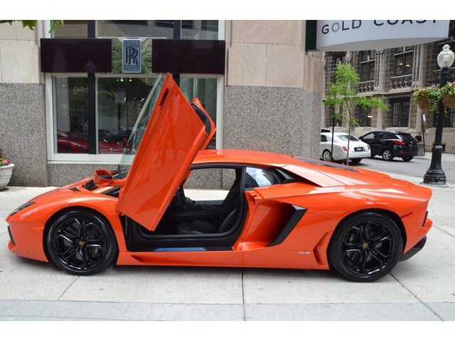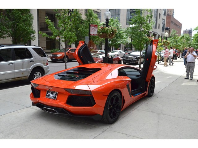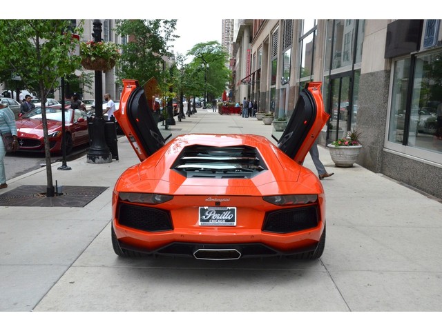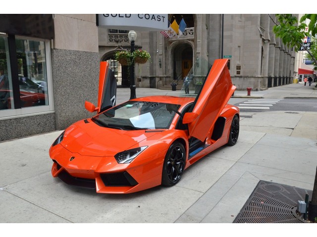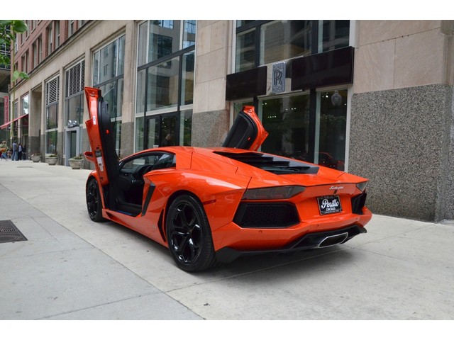 2013 Lamborghini Aventador LP700-4 Arancia Argos Pearl with Black Leather interior! Loaded! One owner car part of a big private car collection! Buy now from an authorized Lamborghini Dealer!