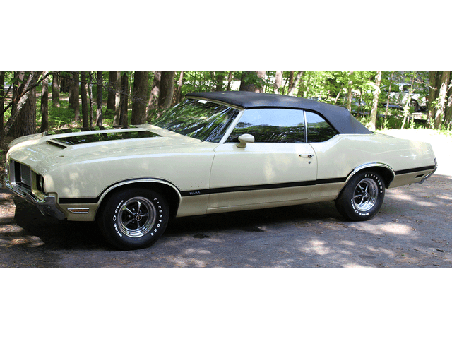 This is a matching #'s 1972 Oldsmobile 442 W-30 Convertible...This is an "X" Code Car...Out of  1970...1971...1972-It is the only year where it was designated in the VIN # with the letter "X" that it is a W-30 from the factory...The other years it needs to be proven by history and documentation...It is one of 113 manufactured by Oldsmobile in 1972...I have owned  the car since 1995...For the last several years I have been working on a 100 point frame off restoration of the car...Every nut... bolt..and washer on this car has been meticulously replaced to oem specifications...Motor...Transmission...Rear End...Brakes and Suspension...Interior...All replaced and brand new and the list goes on and on...I has been a painstaking labor of love...The only difference I would say is that the paint job on the car done during the restoration far exceeds the quality of the stock paint job from the factory in 1972...The paint is spectacular...The restoration is 95% complete...All that is left is some electrical...Installing the interior and some trim around the car...Every part that is not seen in the pictures I have purchased brand new and is waiting to be installed...Nothing is missing...Heater vents...Ram air set up...Interior pieces...Seat belts...Emblems etc...I have it all...I have lots of pictures and documentation of the restoration...In all the years I have owned the car and during the restoration I have spoken to and or dealt with every 442 parts Manufacturer/ Distributor...Junk yard and 442 W-30 Officianado across the country...My research has led me to believe that this car is 1 of 1...The only Bamboo/Black Oldsmobile 442 W-30 Convertible in 1972...No Oldsmobile 442 W-30 Officianado that I have spoken to in all the years I have owned the car or during the restoration has ever seen one...I unfortunately cannot complete the restoration and need to sell the car...My loss is your gain...The time and material I am into the car for is almost twice what I am asking for it...Look forward to hearing from you...My name is Stephen Habo...
