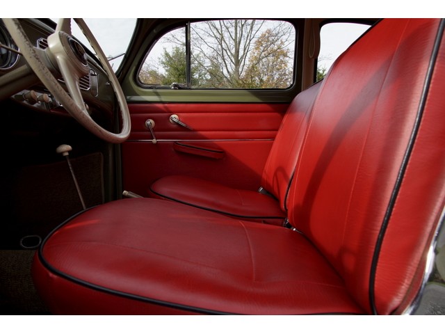 The interior seating and door panels were refinished recently by the original owner.  The dash is in excellent unrestored condition in its factory Reed Green.  All gauges are clear and easily readable. Headliner is in excellent condition.