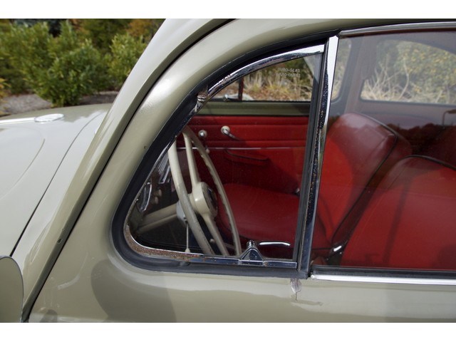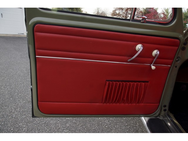 As far as we can tell, this VW has had a repaint in its original Reed Green roughly 15yeas ago. The repaint was very nicely done and is in excellent condition today.  There is one small chip by the drivers side vent window as shown in the photos.  Aside from that, the paint still shines over a rust free California body.