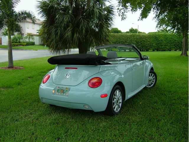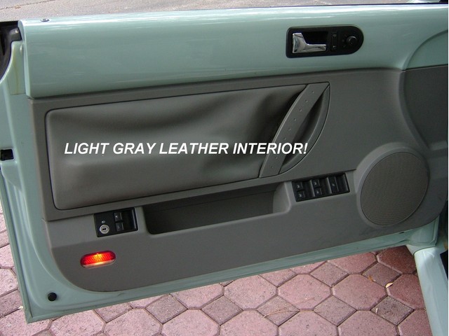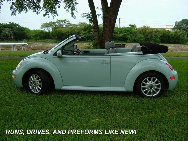 THIS 2004 VOLKSWAGAN GLS EDITION CONVERTIBLE IS AQUARIUS BLUE WITH A GRAY LEATHER INTERIOR AND A BLACK CANVAS ROOF! IT IS A ONE OWNER, NO ACCIDENTS EVER, GARAGE KEPT, TOTALLY RUST FREE VEHICLE! IT RUNS, DRIVES, AND PREFORMS ABSOLUTELY LIKE BAND NEW! ALL THE FACTORY OPTIONS INCLUDING ICE COLD AIR, HEATED SEATS, CD PLAYER, POWER EVERYTHING, POWER CONVERTIBLE TOP, ALLOY WHEELS, ETC! IF YOU ARE LOOKING FOR REASONABLE PRICED BEETLE IN LIKE BRAND NEW CONDITION, LOOK NO FURTHER. YOU JUST FOUND IT! A REALLY FUND CAR TO DRIVE! ALL ORGINAL FACTORY PAINT, BEAUTIFUL LIGHT GRAY LEATHER INTERIOR, AND A PERFECT BLACK CANVAS CONVERTIBLE ROOF WITH A PERFECT FACTORY SEAL ON THE GLASS REAR WINDOW! (THIS SEAL IS VERY IMPORTANT AS MOST ARE IMPERFECT AND A NEW TOP IS VERY EXPENSIVE). NO DENTS, DINGS, SCRATCHES, OR STONE CHIPS! A ONE OWNER, NO ACCIDENTS EVER, BEETLE! ONLY FAULTS WE COULD FIND WAS IT NEEDS A NEW PLASTIC GLOVE BOX HANDLE (IT WORKS) AND THE TOP WILL SOMETIMES HESSITATE GOING DOWN BUT WORKS PERFECT! AVERAGE RETAIL VALUE IS $8125.00. YOU CAN BUY THIS ONE FOR THOUSANDS LESS!