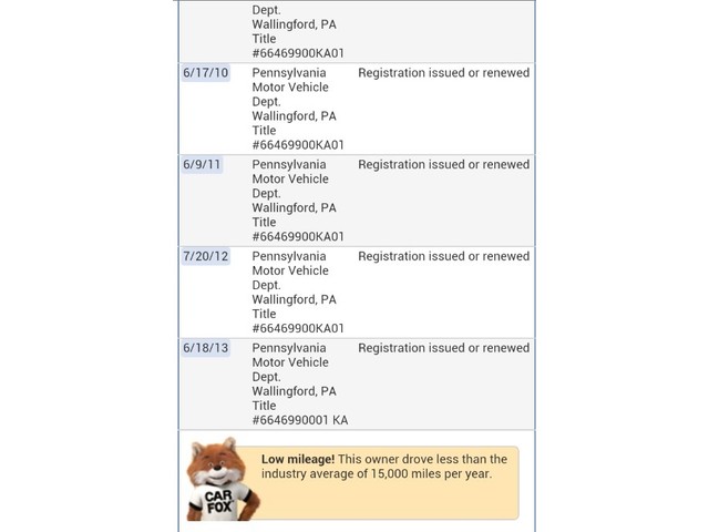 We often use these services to check a vehicles background.  Carfax and Autocheck are wonderful services,  but they have their limitations.  Many times they will show more “owners” than we may state a vehicle has had.  This is because they are an information service only.  They have never seen the car, owned the car,  and have no other information about the car than what is reported from different agencies.  All of this information is originally hand entered into their databases at their source and mistakes and inconsistencies will occur !  For example when a dealer such as ourselves purchases a vehicle they may pick it up as a new owner when this is of course not the case as dealers are not end users.  Also they often contain mileage errors and inconsistencies that appear to make little sense.  Just like any computer generated information report you need to know how to read the report & when to read between the lines. Having seen thousands of these over the years we can help you understand the information listed in these reports,  just ask.