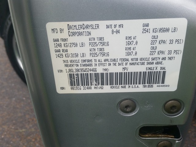 VIN: 1J8GL38K95W524466   Interior Color: Gray