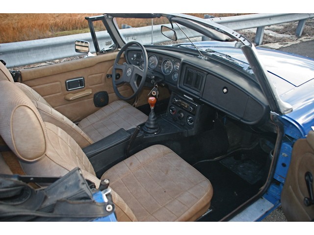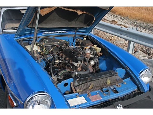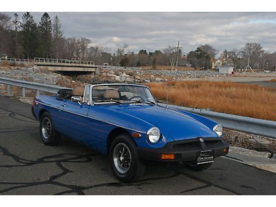 The Classic Car Gallery is proud to offer this  excellent driver quality , rubber bumper 1978 MGB, in correct  TAHITI BLUE paint. This 2-OWNER CAR is a very original, with original floors, interior, no rust, and all original panels. She is in great condition both cosmetically and mechanically. The vehicle is a strong daily driver. The BLUE paint shows well, with good luster and shine. There are some minor nicks and dings around the car, commensurate to the age of the car. The original TAN interior is in good condition with some fading, but no rips and few blemishes. The carpets are original and show well. The door tops are worn. The vinyl replacement top is in excellent condition, the window is clear and the car comes with a matching tonneau cover. She was just the recipient of  more then $2500 IN DOCUMENTED SERVICE WORK. The work was performed in DECEMBER 2013 by marque specialist BRITISH AUTO REPAIR, of Southport, CT. The work included new brakes and brake lines, fuel gauge sender, new cap, rotor, wires and plugs, new engine mounts, new shift linkage, and a full fluid service. In addition, NEW TIRES WERE INSTALLED. This car is ready to go, and needs nothing. The 1800cc 5 bearing motor was just tuned, runs strong, makes good power and is in an excellent state of tune. The 4-speed transmission is excellent, as is the clutch. The car has an auxiliary electric fan, oil cooler and fuel pump. She starts well, and runs cool and smoothly. The trim is nice. The brakes are fresh, and the car stops with authority. All mechanical systems work, as they should. She car is a joy to drive, and gives the driver the classic British roadster experience. This driver condition MGB is ready to go. All she needs is a proud new owner. Feel free to call 203 256 9800 or email Steven@classiccargallery.com if we can answer any of your questions.