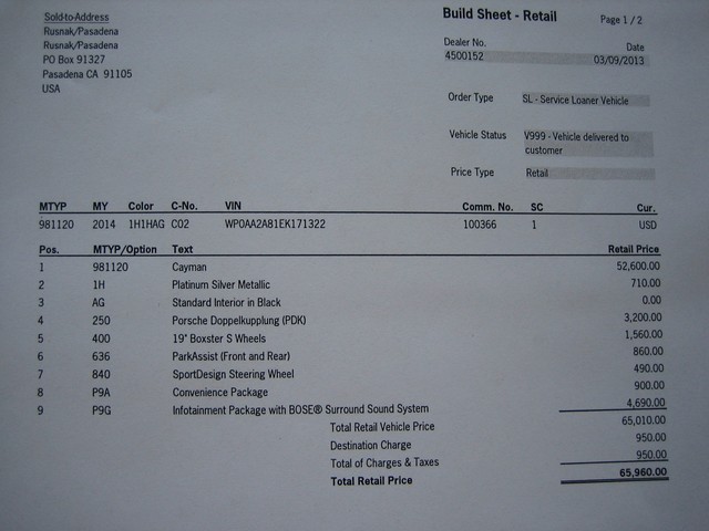 THIS WAS OUR CUSTOMER DEMO CAR SO IT HAS BEEN PAMPERED NEEDLESS TO SAY. THIS IS A GREAT OPPORTUNITY TO PURCHASE A PERFECT BUILD 2014 CAYMAN AT A LARGE DISCOUNT.