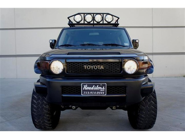 ROADSTERS AUTO IS PROUD TO PRESENT FOR SALE THIS MUCH SOUGHT CUSTOM LIFTED 2007 TOYOTA FJ CRUISER 4WD! THIS FJ CRUISER IS FEATURING  BLACK COLOR EXTERIOR ON BLACK COLOR CLOTH INTERIOR! WITH 116K ORIGINAL MILES IT LOOKS CLEAN INSIDE AND OUT. IT COMES LOADED WITH OPTIONS SUCH AS DUAL FRONT AND SIDE AIRBAGS, PARKTRONIC, CUSTOM ROOF RACK WITH FOUR HID DRIVING LIGHTS, DESIGNER AE ALLOYS 17 INCH BLACK WHEELS WITH BIG 37 INCH BIG TIRES, FACTORY SUBWOOFER AND MANY MORE(SEE THE PICTURES FOR MORE DETAILS)! ALL THE OPTIONS FUNCTION ACCORDINGLY! THE POWERFUL 6 CYCLES 4.0L ENGINE RUNS LIKE NEW AND THE 6 SPEED MANUAL TRANSMISSION SHIFTS SMOOTHLY INTO GEARS AND PROVIDES SOME GOOD POWER! THE BLACK COLOR EXTERIOR IS IN GOOD AND HEALTHY CONDITION AND THE BLACK CLOTH INTERIOR HAS BEEN KEPT CLEAN! THE OVERALL CONDITION OF THIS TOYOTA IS GOOD, AND IT IS PRICED TO SELL VERY QUICK, SO CALL MIKE NOW AT 713-914-0444 TO BUY IT NOW.