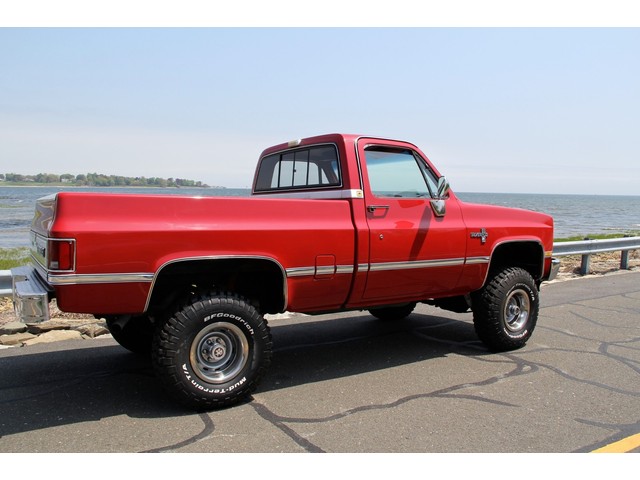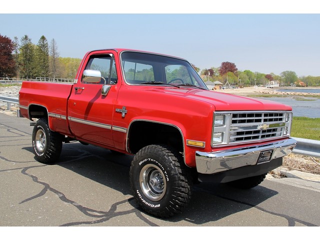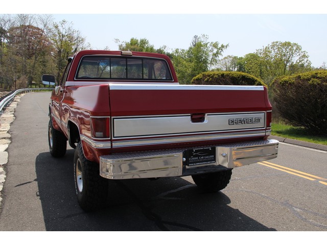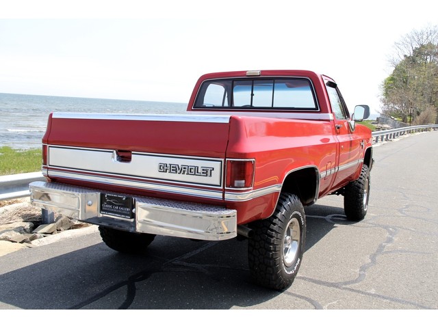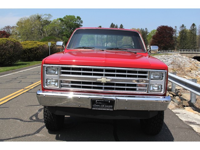 The Classic Car Gallery is proud to offer this RESTORED 1986 Chevrolet K10 Short Bed Pickup. Finished in RED with a RED CLOTH INTERIOR, she makes a bold statement wherever she goes. The truck was recently restored  both cosmetically and mechanically. The entire frame was inspected, found to be structurally sound, and Chassis Saver (POR15) was applied; her undercarriage remains in excellent condition, and should last well going forward. The truck received a proper paint job; the body was stripped down to bare metal and sprayed in epoxy primer prior to receiving a base-coat, clear-coat finish. The paint shows well with deep shine and great luster. The interior was stripped as well, the seats, dash, carpets and door cards were all restored to new. She was fitted in 2010 with a new Goodwrench 350 cid crate motor. She has been driven only 5000 miles on this engine, and it continues to perform well, with great power and torque. Her transmission and transfer case operate and engage as designed, and all mechanical systems work as they should. A new set of BF Goodrich tires were fitted at the time of the motor install, and the have plenty of remaining tread. Recently tuned and given fresh fluids, she drives just as well as she looks. Her bed has been kept “natural” for the purposes of displaying the clean shell that was used to start the project, a bed liner can be easily installed by the new owner for a more finished look. Dont miss this opportunity, as this is being sold well below the cost of the restoration. With a clean carfax, all this k10 needs is an enthusiastic new owner! Please feel free to call 203 256 9800 or email Steven@classiccargallery.com if we can answer any of your questions.