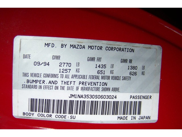 IF YOU ARE NEW TO EBAY OR HAVE POOR FEEDBACK PLEASE SUBMITED YOUR CONTACT NUMBER SO WE CAN CALL YOU TO DISCUSS HOW YOU WILL COMPLETE TRANSACTION. ALSO REVIEW THE MANY PHOTOS ON THIS BABY I DO THIS UP FRONT UNLIKE COUNTLESS OTHER ADS YOU WILL COME ACROSS. THIS EFFORT IS MADE SO BUYER CAN MAKE A GOOD DECISION ON GETTING HER AND FEEL COMFORTABLE WITH THERE PURCHASE. I WILL PUT IN THIS DISCLAMER FOR THE 1 PERCENTER NUT'S THAT THINK THEY ARE BUYING A BRAND NEW 1995 MIATA....THIS IS IN VERY GOOD CONDTION AS YOU CAN SEE! IT IS FAR BETTER THAN MOST FOR AGE. PLEASE REMEMBER IT IS USED AND 19 YEARS OLD AND MAY SHOW A SCUFF, AGE, DING, CHIP, MARKS OR USE THAT SHOW ON A 19 YEAR OLD THAT HAS BEEN DRIVEN 83K SO IF THAT KEEPS YOU UP AT NIGHT PLEASE BUY A BRAND NEW ONE AND NOT THIS NICE 1995. PLEASE REVIEW MY FEEDBACK AND SEE I HAVE SOLD OTHER HIGH DOLLAR ITEMS AND NOT A BOX OF KLEENEX OR WAX CANDLES AND TELL IT LIKE IT IS FOR NO DISAPPOINTMENTS. PEOPLE ARE PLEASED WITH MY REPRESENTATION PERIOD. PLEASE ASK YOURSELF A QUESTION WHY FIX UP AN OLD SLED VEHCILE WHEN YOU CAN ENJOY AND DRIVE THIS ONE NOW AND SAVE BIG IT DOES MAKE SENSE! WITH THIS ONE BEING SOLID NICE AND CLEAN! MAKE IT ONE TO SNAP UP SHOULD NOT LAST LONG AT THIS DEAL.  TITLE IS CLEAR!