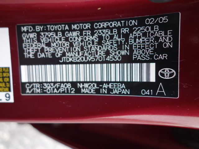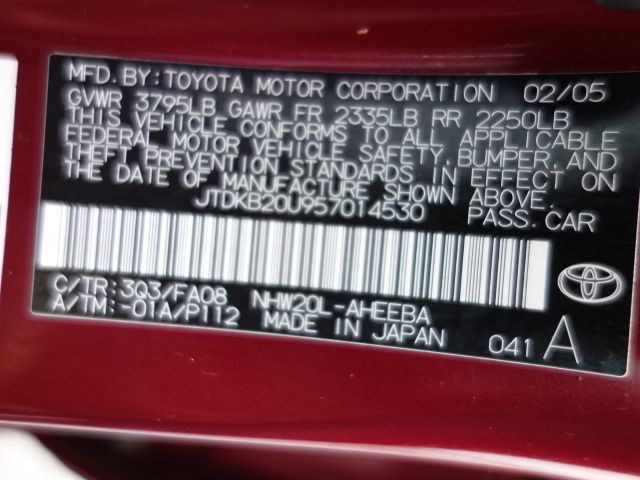 • VIN: JTDKB20U957014530