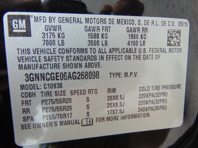 • VIN: 3GNNCGE06AG268098