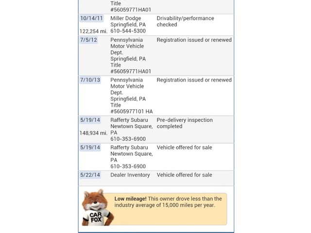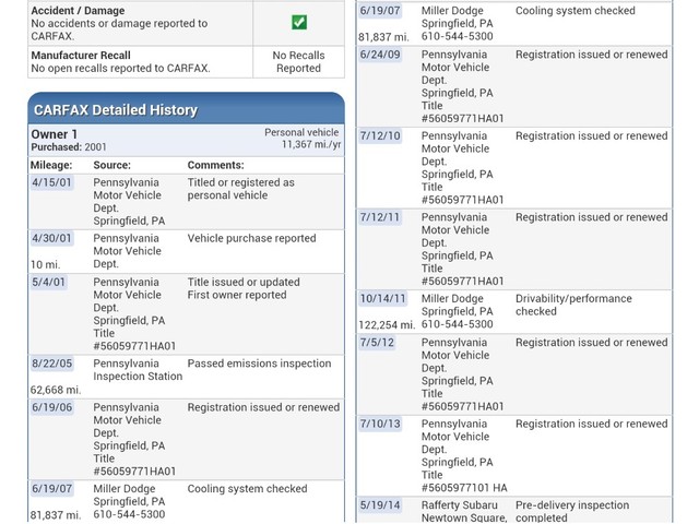 We often use these services to check a vehicles background.  Carfax and Autocheck are wonderful services,  but they have their limitations.  Many times they will show more “owners” than we may state a vehicle has had.  This is because they are an information service only.  They have never seen the car, owned the car,  and have no other information about the car than what is reported from different agencies.  All of this information is originally hand entered into their databases at their source and mistakes and inconsistencies will occur !  For example when a dealer such as ourselves purchases a vehicle they may pick it up as a new owner when this is of course not the case as dealers are not end users.  Also they often contain mileage errors and inconsistencies that appear to make little sense.  Just like any computer generated information report you need to know how to read the report & when to read between the lines. Having seen thousands of these over the years we can help you understand the information listed in these reports,  just ask.