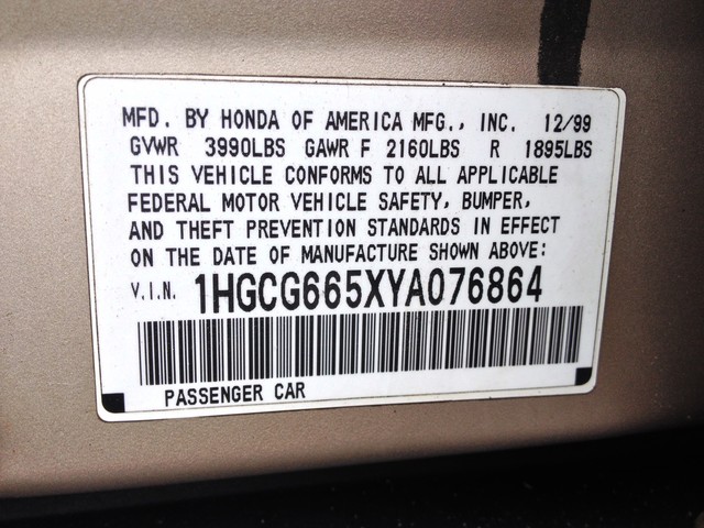 This 2000 Honda Accord LX Sedan had 3 Previous Owners per the AutoCheck Report shown above.  It has a valid NJ inspection sticker through 7/14.  This Honda Accord runs great and there are no warning lights lit on the dashboard whatsoever and no mechanical problems.  I test drove this Honda for over 100 miles and it runs and drives beautifully.  The motor sounds great and the vehicle starts up everytime and has a solid battery.  The transmission does shifts perfectly smoothly throughout all gears which I demonstrate in the video above.  The wheel alignment is also perfectly straight and the wheel does not pull to one side or another while driving.  The brakes are also very effective and safe and feel great which I give several examples of during the test drive.  There are no odd noises or sounds coming from the vehicle while driving whatsoever - No odd braking noises or other odd noises while making wide turns etc.  This car really drives very smoothly and is a pleasure to drive making it a great commuter car.  It gets 19 City and 26 Highway mpg with the 2.3 Liter 4 Cylinder engine.  All of the interior/exterior lights and signals are fully operational.  (PLEASE SEE THE YOUTUBE VIDEO OF THIS HONDA ACCORD FOR A FULL WALKTHROUGH AND SHORT TEST DRIVE)  The interior has a ton of great features including:  Power Windows, Power Locks, Power Mirrors, Cruise Control, ABS, JVC CD Player, Am/Fm Radio, Cold Air Conditioning, working heat and much more.. All of which is fully operational inside the vehicle.  The interior is in exceptional condition for the year and mileage of the car.  The carpets are in great shape and have only some minor blemishes on them.  The seats are also in great shape and have no rips/tears or stains on them whatsoever.  The interior also smells great, there is no pet odor or smoke smell whatsoever.  This was definitely a NON-SMOKER vehicle.  The body is also in fantastic condition.  The paint is super clean and the clearcoat is fully intact on the paint.  There are no noticeable dings or dents on the body whatsoever and there is no rust either.  The headlights are super clear and bright as well.  The tires are just about brand new as you can see in the pictures or video and the hubcaps are all matching and do have some cosmetic damage on them.  The engine bay is super clean and all fluids are filled to proper levels in the car.  There is a spare/jack/wrench included.  If you have any questions about this 1999 Honda Accord LX Sedan please feel free to send us a message or give us a call at 908-619-6227.  This vehicle comes with: