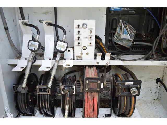 added is a Pioneer am/fm/cd player with backup camera. The added on features on this truck are numerous . 1.) honda air compressor 2.) 3203 PRX Auto Crane  3.)Lubemate tank 4.) Bobcat 225 welding machine and many other options.