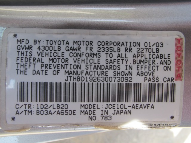 Here we have this Beautiful 2003 Lexus IS300 with just over 82,400 miles and comes with a Clean Carfax history report. This Lexus is equipped with Navigation, 6-CD changer, power front seats, power windows/locks/mirrors/sunroof, Remote keyless entry, Homelink settings, Leather upholstery, Cruise control, Alloy wheels and more! Don't miss out on this vehicle. Call today to arrange a test drive! The options and features include: 3-Point Front & Rear Seatbelts, Child Restraint Seat Top Tether Anchor Brackets, Driver & Front Passenger Airbags, Front Seat-Mounted Side-Impact Airbags, Front Side Curtain Airbags, Height Adjustable Front Shoulder Belt Anchors, HomeLink Universal Transceiver, Vehicle Theft-Deterrent System, 8-Speaker Lexus Premium Audio System, 8-Way Power Adjustable Front Seats, AM/FM Stereo w/Cassette Player, Auto-Dim Electrochromic Interior Rearview Mirror, Cruise Control, Headlight Delay-Off Feature, In Dash 6-Disc Compact Disc Changer, Leather Upholstery, Power Door Locks, Power Windows w/Driver Auto Up/Down, Rear Seat Pass Through To Trunk, Remote Activated/Key Linked Illuminated Entry, Navigation System, Auto-Dimming Electrochromic Exterior Mirrors, Automatic On/Off Multi-Reflector Headlights, Fog Lights, Power Heated Exterior Mirrors, Power Tilt/Slide Moonroof w/Sunshade, Variable Intermittent Wipers W/Mist Cycle, Anti-Lock Braking System, Brake Assist System, Driver Door Two-Turn Unlock, Electronic Brake Force Distribution, Power 4-Wheel Disc Brakes, Power Steering