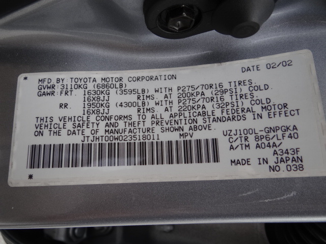 Make: Lexus   Engine: 8 Cylinder, 4.7 L