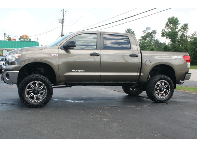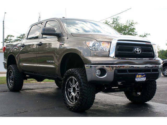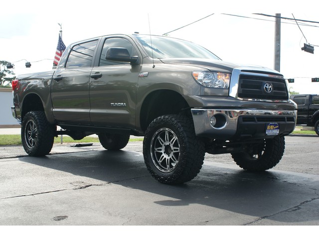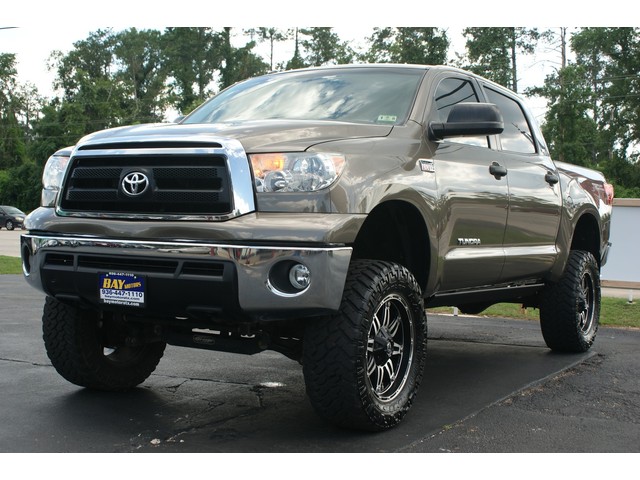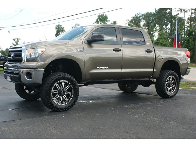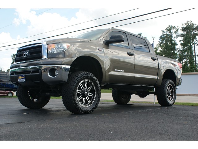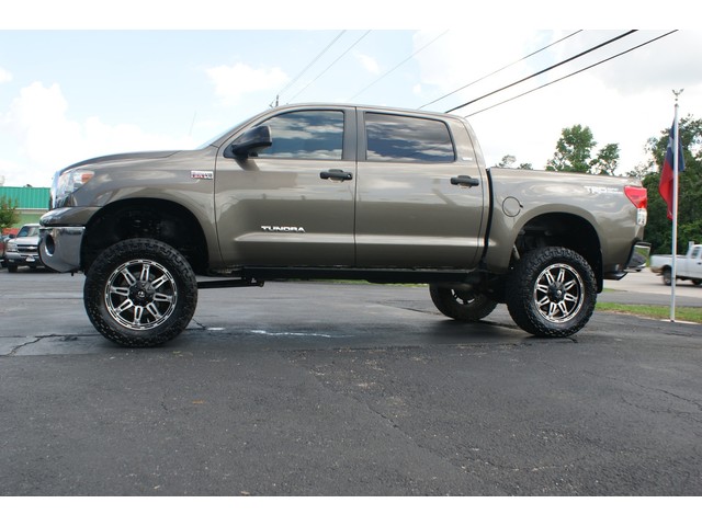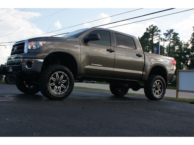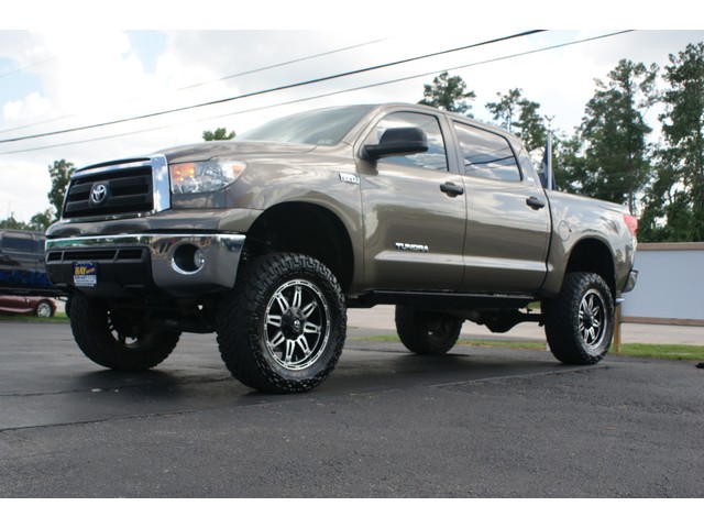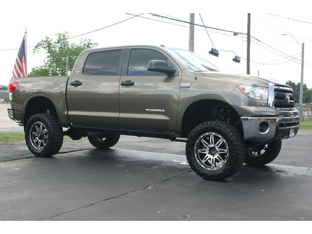 HERE IS A 2010 TOYOTA TUNDRA CREWMAX 5.7 LITER 2WD LIFTED TRUCK.
