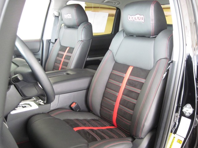 Here it is again! New Venom Tundra. This truck started as a SR5 and was converted the Venom. It has navigation, spray in, venom bumpers, 37" tires, 22" wheels, 6" lift, fender flares, graphics, LED bed lights under the bed rails, red LED interior accent lights, custom projector headlamps w/red switchable accents behind the projectors(I do not sell these headlamps yet so please do not inquire on just the headlamps), LED lights for the front/rear, Venom seats with heaters, custom paint work, and more. This truck lists for $64737. Serious inquires only!