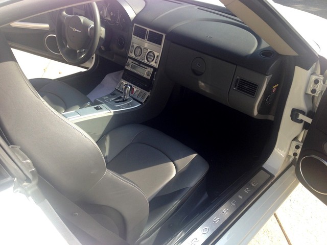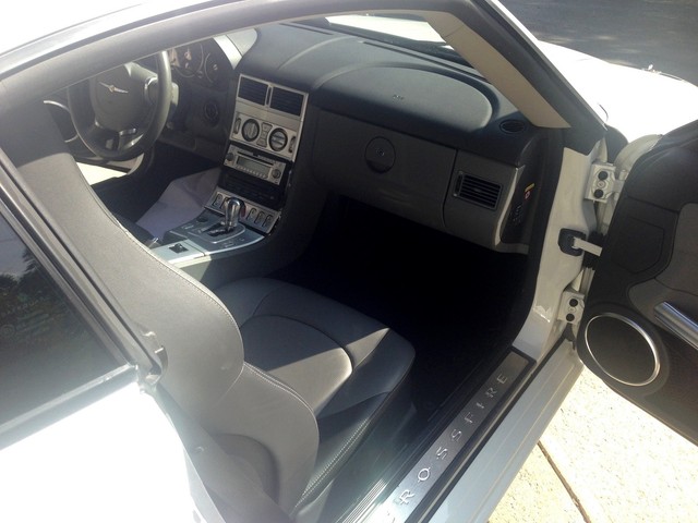 Today we have for you a 2004 Chrysler Crossfire  finished in Alpine White Metallic with  two tone Blank and Gray interior,Adult Owned non-smoker in excellent condition.The body is 100% rust free as is the undercarraige,The paint is nice and glossy and there no  scuffs or dents,never seen snow or rain always garage kept.All electronics function as they should,the motor is nice and quiet,the transmission is smooth the a/c and heat work great.Tires are all great with over 85% tread,She is fully serviced and ready to go to a good home.attention.