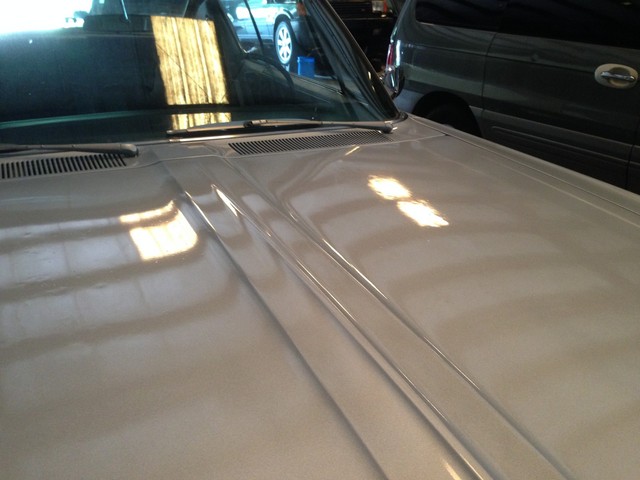 The interior is a 9.5/10. The wear on the interior is so minimal, I can't even point out anything specific. The exterior is straight and rust free. It has been repainted at some point with a super shiny, extremely glittery metallic silver. Even though the paint job is very nice, it's not perfect. I would give it a 9/10 with a few minor imperfections, some from driving and a few from the painting process. I tried to take pictures of all of it, but it's so minor and faint that they may not show up.  The front bumper had a chip in the chrome that was touched up.
