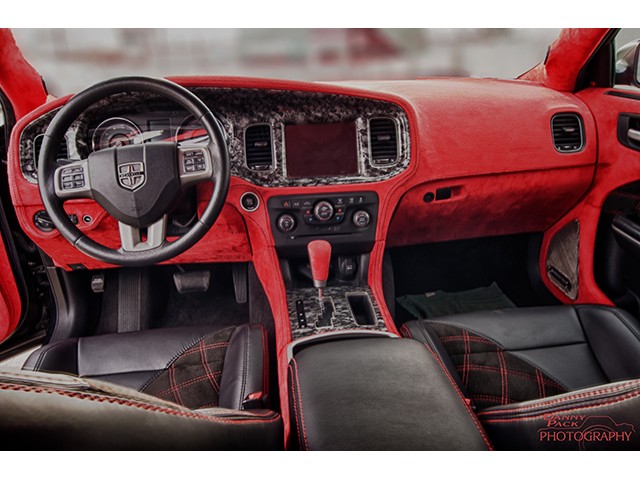 For the build we started off with a fully loaded 2011 Charger R/T Max. From the factory this car had every option. Heated and cooled front seats, heated rear seats, 8.4" UConnect system, heated steering wheel, adaptive cruise control, sunroof, backup camera, etc. Everything still works just like it did from the factory!