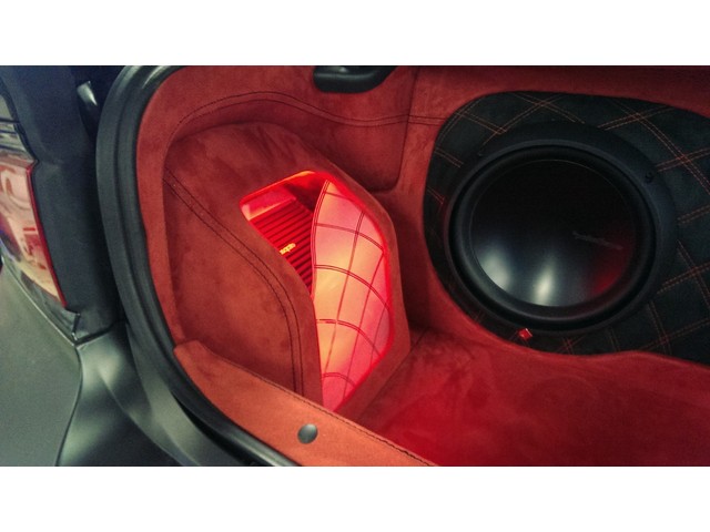 • Custom built rear package tray with stainless grilles for speakers and subwoofer port