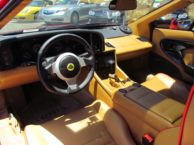 The 1995 Lotus Esprit includes standard interior equipment, such as a tachometer, air-conditioning, a cassette player, a CD player, and leather seating. This two-door coupe is designed to carry two passengers with about as much space as expected in a sports car without much trunk space either.