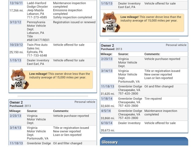We often use these services to check a vehicles background.  Carfax and Autocheck are wonderful services,  but they have their limitations.  Many times they will show more “owners” than we may state a vehicle has had.  This is because they are an information service only.  They have never seen the car, owned the car,  and have no other information about the car than what is reported from different agencies.  All of this information is originally hand entered into their databases at their source and mistakes and inconsistencies will occur !  For example when a dealer such as ourselves purchases a vehicle they may pick it up as a new owner when this is of course not the case as dealers are not end users.  Also they often contain mileage errors and inconsistencies that appear to make little sense.  Just like any computer generated information report you need to know how to read the report & when to read between the lines. Having seen thousands of these over the years we can help you understand the information listed in these reports,  just ask.