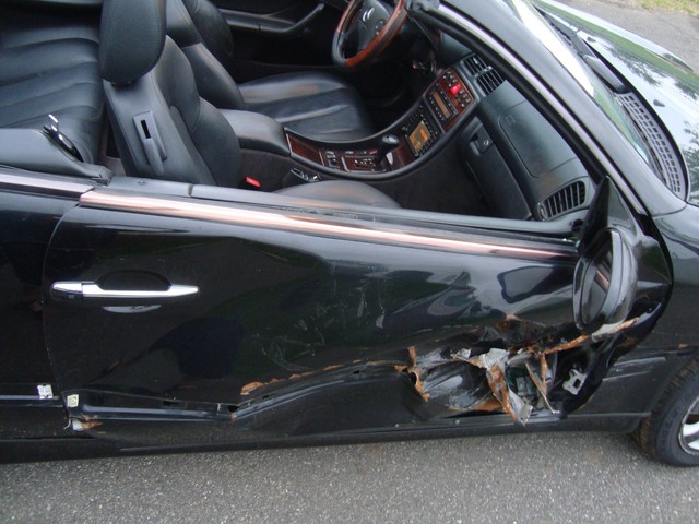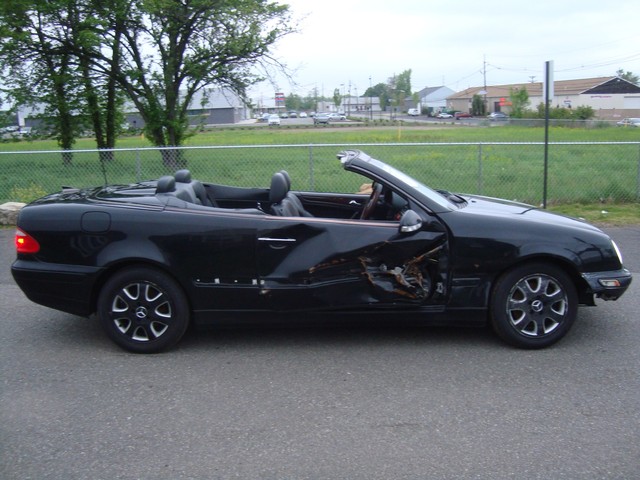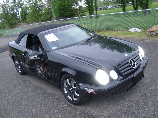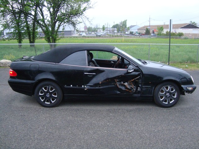 As seen in the pictures down below this nice looking 2000 Mercedes CLK320 Power Convertible with Navigation has sustained light right side damage mainly to the right door. This vehicle was directly purchased from insurance auctions for resale in the condition you see it on the pics. No middle man involved. We have the salvage certificate of title (no-liens) at hand and ready to transfer to the new owner. Such vehicles can be legally returned back to the roads after repairs and your state motor vehicles inspection. Damaged areas are clearly shown in the pictures below. The right side damage is clearly shown on the pictures down below. Looks like the right front wheel also took a bump during the accident. The car does steer and we're able to move it around our lot. Possibly the strut or a suspension arm is bent/damaged but should be an easy mechanical fix as the whole suspension is not damaged badly beyond repair. Whatever the case is one can get a complete knee assembly with all suspension components for this car through www.car-part.com for under $300. There is no damage to the right rocker underneath the right door. The rest of the body in good shape with good looking paint with some light/minor dings/scrapes Overall the car looks great and paint shines great. All airbags are ok. There is no undercarriage damage. The great news is that the car starts, engine runs great, goes into gear and we are able to drive it around within our lot. Interior is in excellent condition as seen in the pictures down below. Excellent black leather seats. Comes equipped with almost every possible option with the sport leather dual power seats, heated seats, dual power seats, Bose Sound, Factory Navigation (missing CD), XENON HID headlights and more. Power convertible top is in good condition and opens/closes fine with the push of a button. Don't be fooled by the slightly high mileage as the overall condition of the car indicates it was most likely highway driven and well maintained. See below photos down below for overall condition and please ask questions before making a purchase and not after.