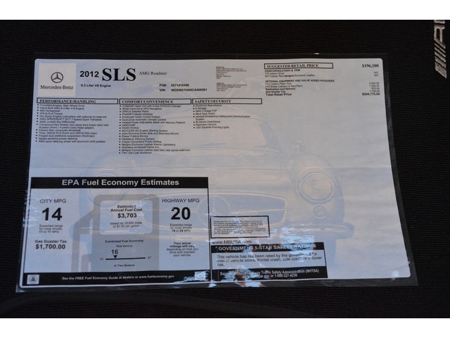 2012 Mercedes SLS Roadster Iridium Silver/ Red Interior $204K MSRP Carbon Fiber