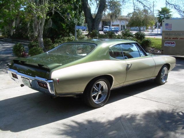 1968 Pontiac Lemans Coupe, with the Pro Touring appearance. Powered by a Big Block 455 CI. with a Holley Street Eliminator intake and Holley carb, MSD ignition and dual throaty Flowmaster styled 2 and 1/2 dual exhaust. The engine compartment is detailed pleasing to any judge and is set off by chrome valve covers and air breather. The power of the Pontiac big block is carried through to the twelve bolt rear end by a four speed transmission. Moving to the interior of this muscle car you'll notice immediately how the car is extra clean throughout and has been keep very original in appearance. A wood grain steering wheel and a set of Sunpro auxiliary gauges to monitor what's happening under the hood are the only significant changes. The exterior catches everyone's attention at any Car Show or Cruise In with what has become a Pro Touring styled paint scheme. This is further set off by a rear spoiler, fiberglass hood and a set of reversed Cragar SS mags.To assist with the handling Fuzion ZR1 tires, the front in 235/45R 17's while the rear is held down by a pair of 255/50R 17's. Pontiac and muscle car enthusiasts here's a head turner, in looks, sound and performance. Take a long look at this one and, Catch the Excitement ------ PONTIAC!!