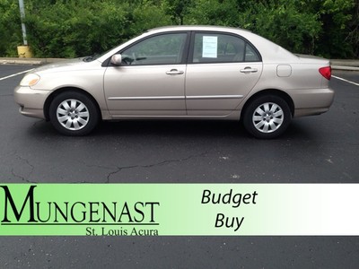 Talk about a deal! The Dave Mungenast St. Louis Acura Advantage! This 2003 Corolla is for Toyota nuts looking high and low for that perfect, fuel-efficient car. With a precision-tuned 1.8L MPI DOHC engine, it will wring every last mile it can out of a drop of fuel. This car is nicely equipped. New Car Test Drive called it "...among the best of the compact sedans. It's reliable and thrifty, but it's also refined and comfortable..." J.D. Power and Associates gave the 2003 Corolla 4.5 out of 5 Power Circles for Overall Dependability.