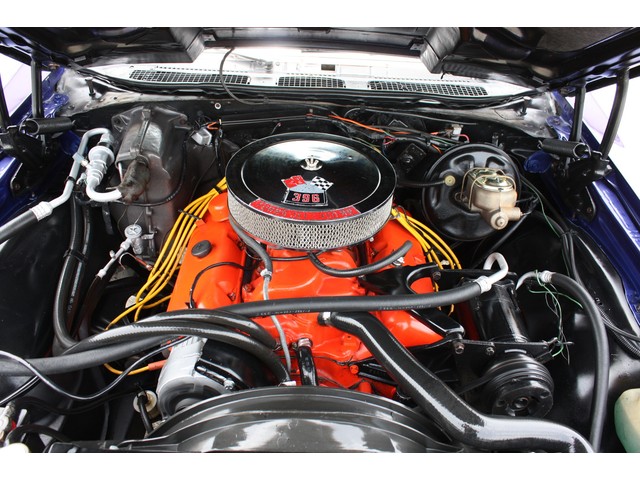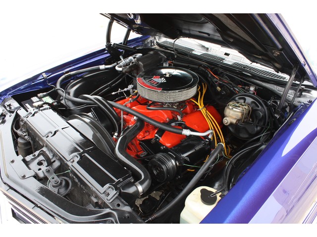 Open the hood, and you are met with the heart of this machine, a balanced and blueprinted GM 396/375hp BB with new Comp Cam, valve springs, lifters, timing gears, timing chain, starter, flex-plate, alternator, hi-volume water pump, 600cfm Edelbrock 4bbl, and a FLOWMASTER Flo-Pro performance exhaust system.