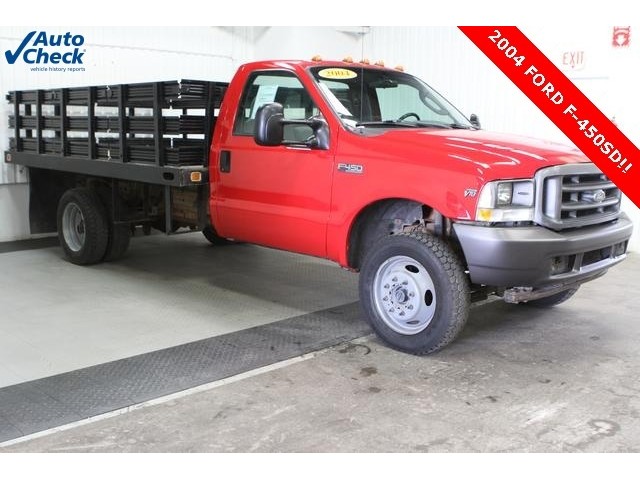 6.8L V10 EFI, 12 Foot Stake Bed, 4X4, and Low Low Miles. Red Hot! What an outstanding deal! Essig Motors is your one stop shop for value, service and quality. Be the talk of the town when you roll down the street in this superb 2004 Ford F-450SD. This fantastic F-450SD is the big truck with everything you'd expect from Ford, and THEN some. *Payment @ $628 for 36 months @ 4.84 APR Plus TT&L With Approved Credit.*
