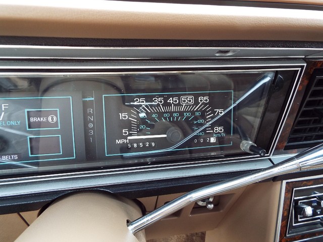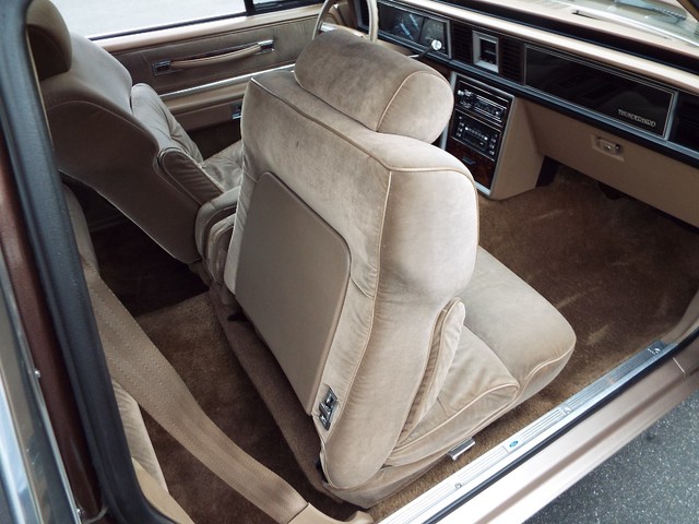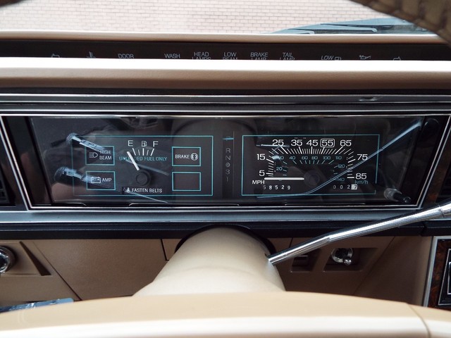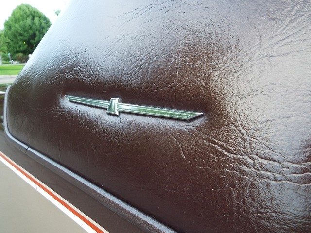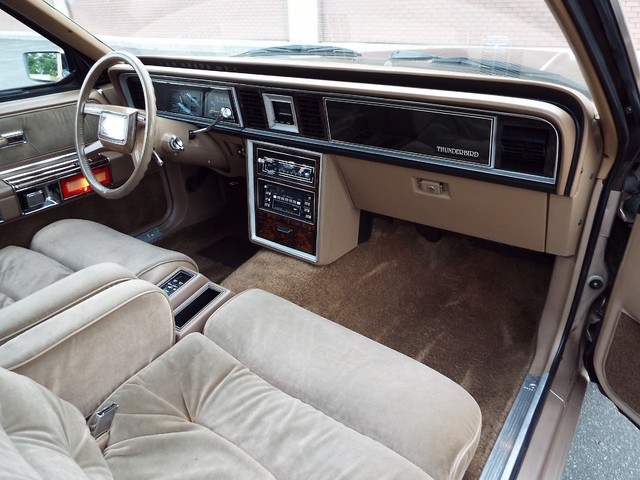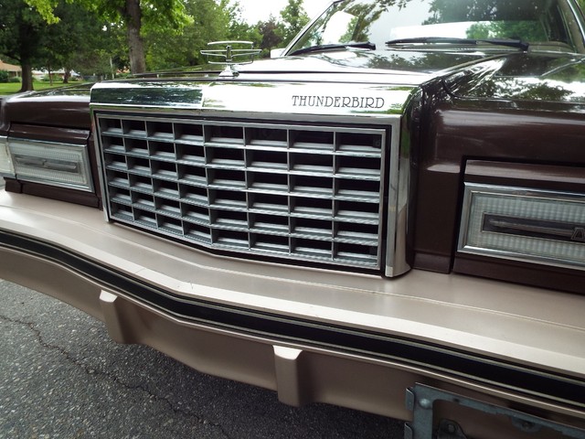 This Thunderbird has what appears to be the STRONG - ORIGINAL - 3.8 Liter V6 motor in it which is running well indeed. The motor also still retains its ORIGINAL intake manifold, ORIGINAL exhaust manifolds,  ORIGINAL Ford scripted valve covers, ORIGINAL two barrel carb and the ORIGINAL air cleaner housing. Sounds good too with the factory style exhaust system. The engine is backed by a SMOOTH - Four speed overdrive automatic transmission that also functions very well. The COMPLETELY FACTORY ORIGINAL !! - Code "JL" - Fawn Tan cloth and Fawn vinyl and faux wood grain accented Thunderbird Town Landau interior is BEAUTIFUL for being ORIGINAL including NICE ORIGINAL Fawn Tan cloth front bucket seats with dual center folding  armrests and factory headrests, good ORIGINAL Fawn Tan cloth rear bench seat that has some imperfections with center padded armrest, VERY NICE ORIGINAL Matching Fawn Tan Cloth and Fawn vinyl and Faux Wood Grain accented door panels, NICE ORIGINAL Fawn Tan carpeting, VERY NICE Fawn Tan cloth headliner, VERY NICE ORIGINAL  Fawn Tan cloth  sunvisors, VERY NICE ORIGINAL Fawn Tan and faux wood grain accented dash, VERY NICE ORIGINAL factory guage clusters, NICE ORIGINAL Thunderbird steering wheel and a VERY NICE ORIGINAL Fawn Tan vinyl dash pad with NO CRACKS !! In my opinion your not going to find a much nicer 100% FACTORY ORIGINAL INTERIOR in a 31 year old car than the one that is in this BEAUTY !! UNBELEIVABLE !! The  FACTORY ORIGINAL Dark Brown Vinyl Landau top is also in VERY NICE condition. The BEAUTIFUL - FACTORY ORIGINAL !! - Two Tone - Code "5V5H" - Light Fawn Glow and Dark Brown Metallic exterior paint is EYE POPPING BEAUTIFUL with very little wear showing other than several small chips and imperfections showing but is still bright, shiny and looks STUNNING as you can clearly see in the pictures below and video above. The - Code "JL" - Fawn Tan Cloth and Fawn vinyl interior with  the matching - Code "5V5H" - Light Fawn Glow and Dark Brown Metallic exterior with the  ORIGINAL Dark Brown vinyl Landau top is a GREAT color combination indeed ! How could you get any better ?!! The CLEAN - SOLID trunk also sports the ORIGINAL charcoal liner, factory original spare tire and the ORIGINAL jack usage sticker. This Thunderbird  is nicely equipped including WORKING FACTORY AIR CONDITIONING,  factory power brakes with discs up front, factory power steering, factory power windows, factory power door locks, factory cruise control, factory 6 way power adjustable driver's seat, factory wing windows, factory tilt steering column, factory trip odometer, factory power antenna, factory rear window defogger, factory dual lighted sunvisor vanity mirrors, dual chrome remote side view exterior  mirrors, factory front and rear seat belts, working original  Dolby AM / FM / Cassette player digital stereo radio, factory guage clusters, factory glove box mounted trunk release, factory hide-away headlights, working original digital clock, good glass, good heater and defroster, original day / night rear view mirror, factory power delay wipers, factory cornering lamps and factory back up lights. All of the ORIGINAL light lenses and reflectors  are also clear, bright UNCRACKED and BEAUTIFUL !! There are not many of these left on the roads for sure !