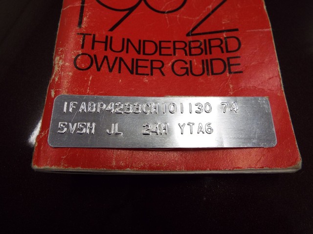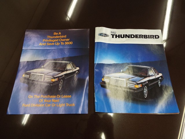 ***  FACTORY ORIGINAL - CORRECTLY MOUNTED - FRONT SUPPORT  MOUNTED THUNDERBIRD DATA PLATE - ORIGINAL 1982 THUNDERBIRD OWNER'S MANUAL - ORIGINAL 1982 THUNDERBIRD SALES BROCHURE - FACTORY ORIGINAL - CORRECTLY MOUNTED - DASH MOUNTED THUNDERBIRD VIN TAG !!  ***