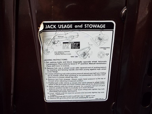 Original Trunk lid Mounted Jack Usage Sticker