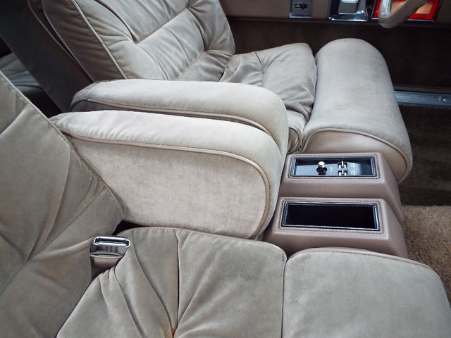 ***  BEAUTIFUL - 100% FACTORY ORIGINAL !! - CODE "JL" - FAWN TAN CLOTH AND FAWN VINYL FAUX WOOD GRAIN ACCENTED THUNDERBIRD TOWN LANDAU LUXURY INTERIOR !!  ***