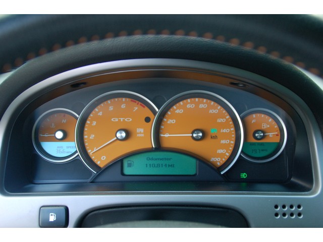 Brazen orange was a color only offered in this the last year for the GTO; 2006. The interior has matching color dial gauges and stitching in the leather gear shift boot and steering wheel.